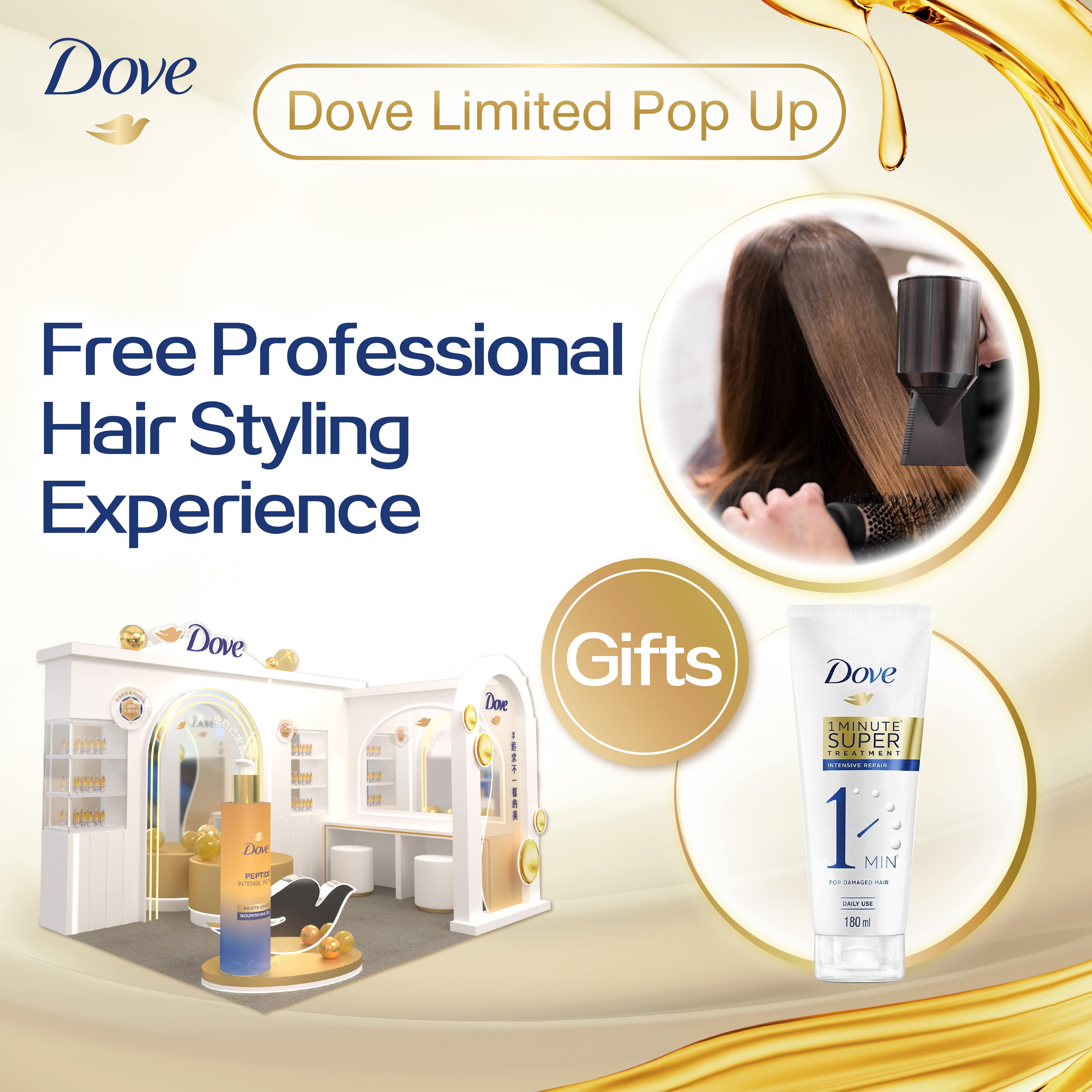 Present this e-Coupon at Dove installation located at Fashion Walk atrium on March 2, 2025 (Sun) from 11am - 12nn to participate ""Dove Professional Hairstyling Experience"" and receive 1pc of Dove 1 Minute Super Treatment (Intensive Repair) 180ml. Workshop Date: March 2, 2025 (Sun) Workship Time: 11am - 12nn Each member can redeem a maximum of 1 e-Coupon. All participants attending the event will be considered an agreement to the following terms and conditions. 1. Each e-Coupon is applicable for one person to participate the event once. 2. All participants must be 18 years old or older. 3. Each session lasts for 15 minutes. Participants are required to follow the instruction from onsite staffs to join the event. If not attending at 11:45am or before, you will be considered as giving up participation. 4. During event registration, participants must this e-Coupon to the staff for identity verification. 5. All participants must assume their own safety risks. The event will use hair straighteners and temporary hair dye, which may pose risks of hair damage or staining of clothing. Hong Kong Unilever Limited and Hang Lung Real Estate Agency Limited will not be liable for any damage. 6. If duplicate registrations are found, the event reserves the right to cancel one of the registrations and will notify the participant. 7. The effects of the products and styling may vary for each individual. Unilever Hong Kong Limited and Hang Lung Real Estate Agency Limited shall not be responsible for any such effects. 8. Unilever Hong Kong Limited and Hang Lung Real Estate Agency Limited will not be responsible for any accidents or injuries occurring to any participants. 9. Participants must take care of their personal belongings. Unilever Hong Kong Limited and Hang Lung Real Estate Agency Limited will not be responsible for any damage or loss. 10. If extreme weather conditions occur on the day of the event (e.g. The Hong Kong Observatory issues a No. 8 or higher tropical cyclone warning signal or a black rainstorm warning), the event will be canceled, and an announcement will be made on social media. 11. The activity is subject to terms and conditions. In case of any disputes, Unilever Hong Kong Limited and Hang Lung Real Estate Agency Limited reserve the right to amend the activity terms and conditions at their sole discretion without prior notice.