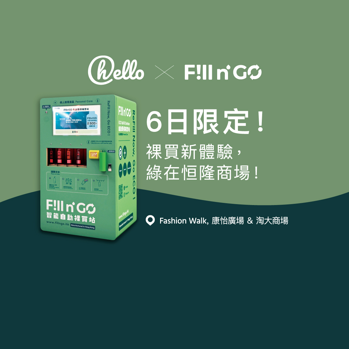 由6月24日起,一連六個星期「綠」約定你! 全港首個「24/7 智能裸買站^」於6月24日正式登陸Fashion Walk, 康怡廣場及淘大商場! hello 會員只需於活動當日符合指定換領資格,即可獲贈Fill n’Go環保智能鋁樽一個及免費體驗自助「裸買」指定天然潔手液 300g一次!今個6月及7月一齊支持環保新概念,走塑裸買新體驗! 活動詳情: 日期:24/6、1/7、8/7、15/7、22/7及29/7 (星期六) 時間:2pm-6pm 換領地點: - Fashion Walk1樓扶手梯旁 - 康怡商場北座地下 - 淘大商場2期1樓中庭 換領方法: 【新會員】 即場下載恒隆商場手機應用程式,輸入推廣碼「Green」,登記成爲新會員,並即時透過會員帳戶登記活動當日於場内單一電子消費滿HK$100之交易,並於指定時間親身到達指定換領地點向活動工作人員出示相關頁面作核對。 【現有會員】 即時透過會員帳戶登記活動當日於場内單一電子消費滿HK$300之交易 ,並於指定時間親身到達指定換領地點附近向活動工作人員出示相關頁面作核對。 智能裸買站 - 免費自助體驗地點: - Fashion Walk1樓扶手梯旁 - 康怡商場北座M樓 - 淘大商場1期地下G53-56號舖旁 ^智能裸買站營業時間將按照指定商場營業時間為準。如有任何更改,恕不另行通知。 名額有限,先到先得,換完即止。 活動受條款及細則約束。